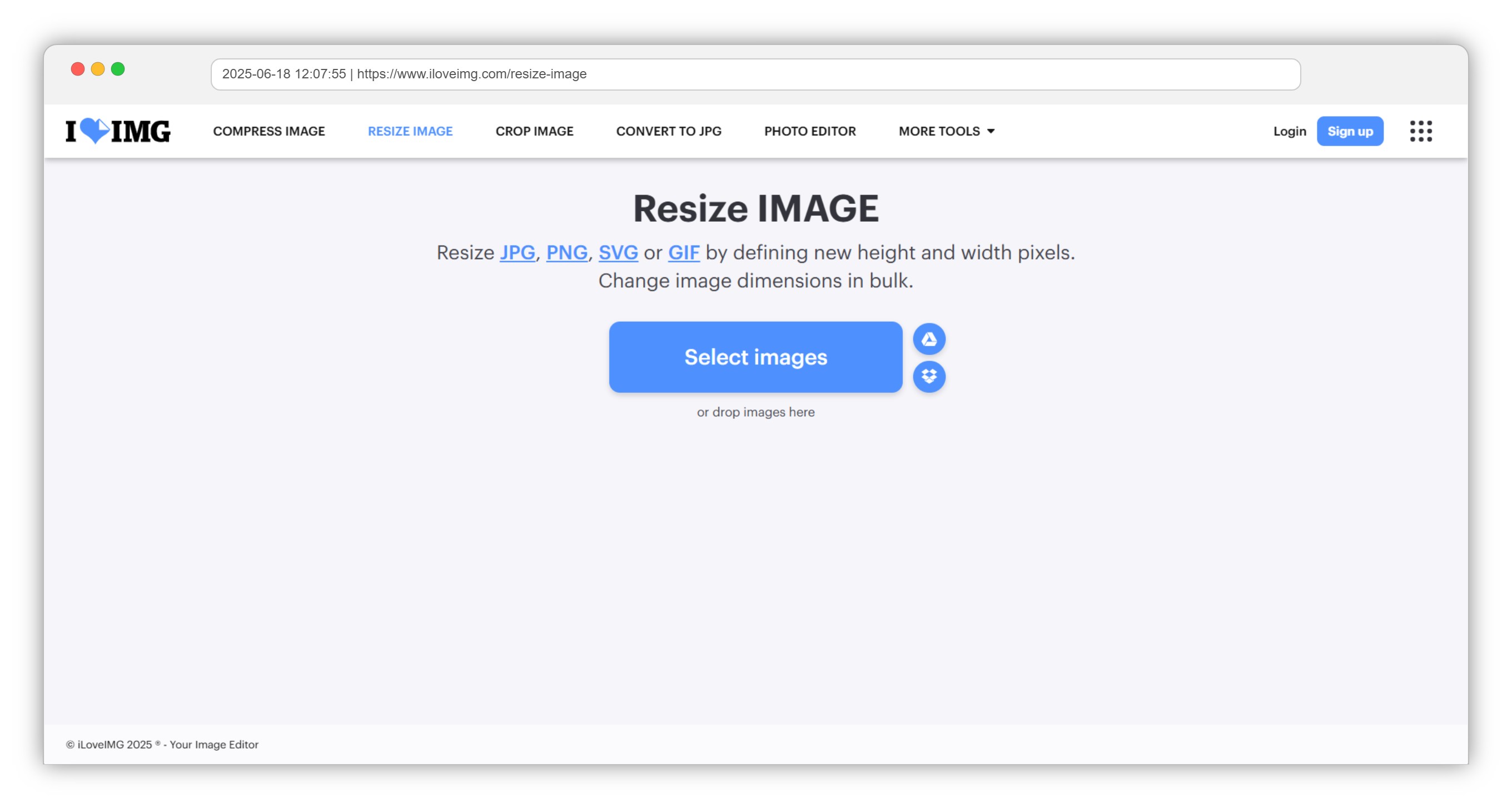 3. Arraste e solte a imagem que deseja redimensionar na área indicada, ou clique no botão "Selecionar Imagem" para fazer o upload da imagem.