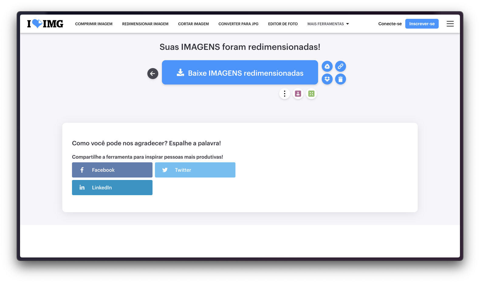 7. Quando o processo estiver concluído, clique no botão "Baixe IMAGENS redimensionadas" para fazer o download das imagens para o seu computador.